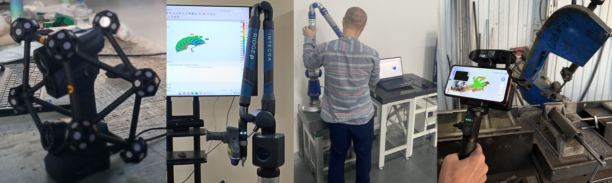 В нашем распоряжении портативные и стационарные системы высокоточного 3D-сканирования (включая лазерные трекеры), измерительные руки и координатно-измерительные машины, геодезические лидарные сканеры, универсальный мерительный инструмент, твердомеры и анализаторы хим. состава.